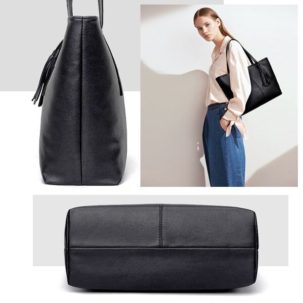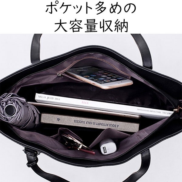 Product name: 送料無料 トートバッグ レザー メンズ レディースビジネスバッグ A4収納 フォーマル 黒 ブラック 無地 シンプル 通勤 通学 (3)