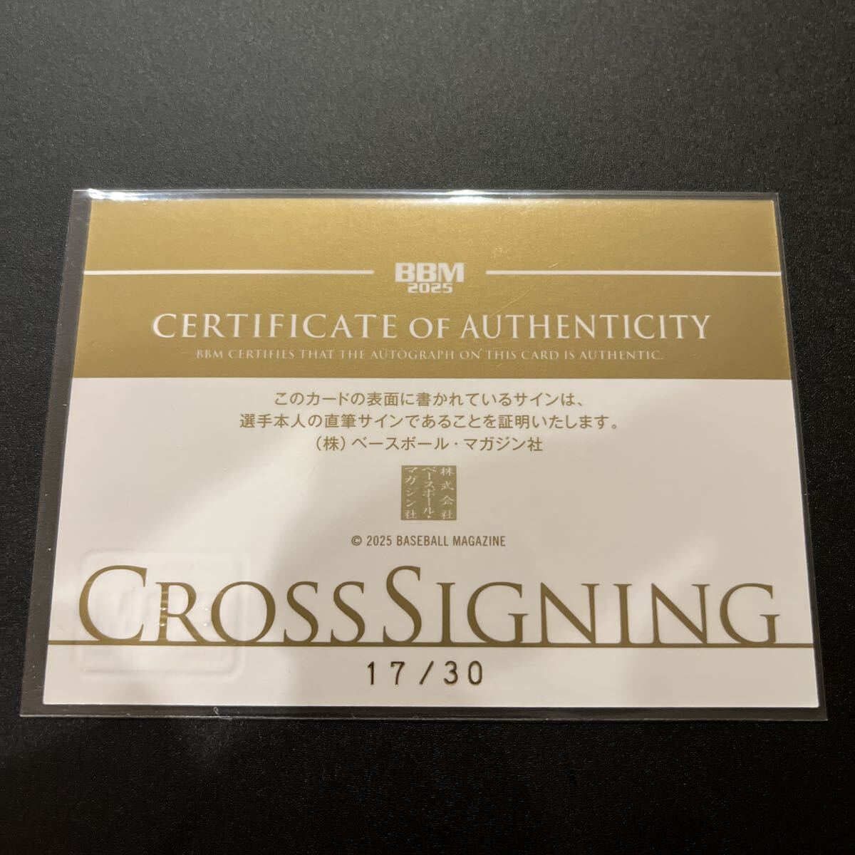 Product name: 2025 BBM 1st version 石川昂弥 クロス直筆サインカード 30枚限定 17/30 中日ドラゴンズ