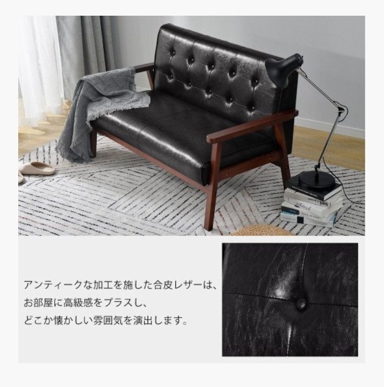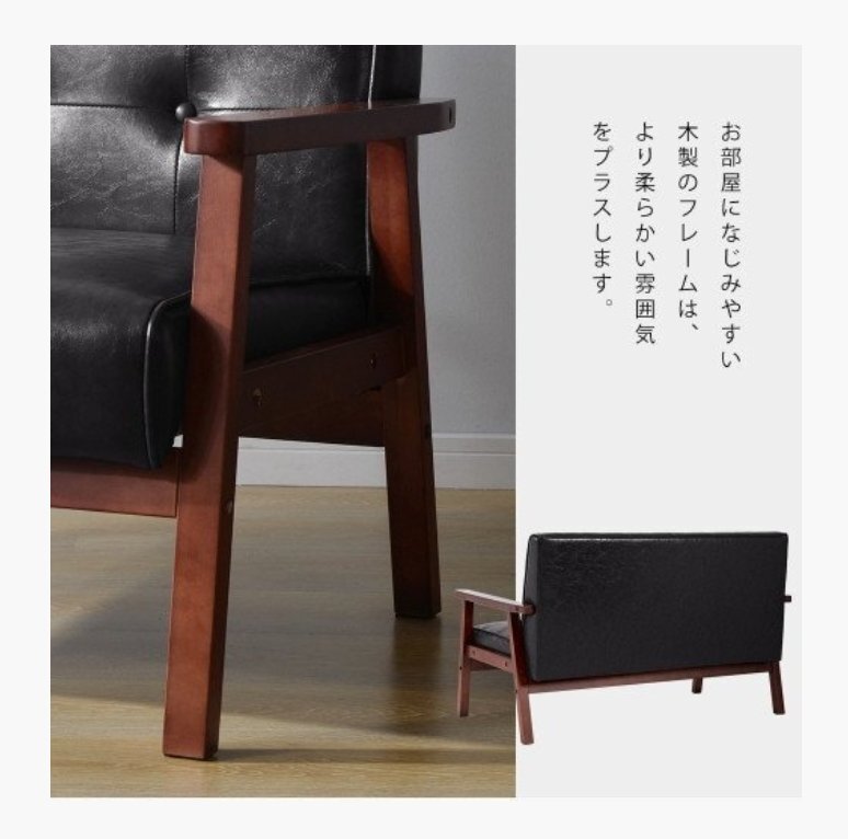 Product name: 【国内発送】2人掛けソファー 2P レザー PVC 肘付き 天然木脚 簡単組み立て おしゃれ 新生活 北欧スタイル ソファベッド