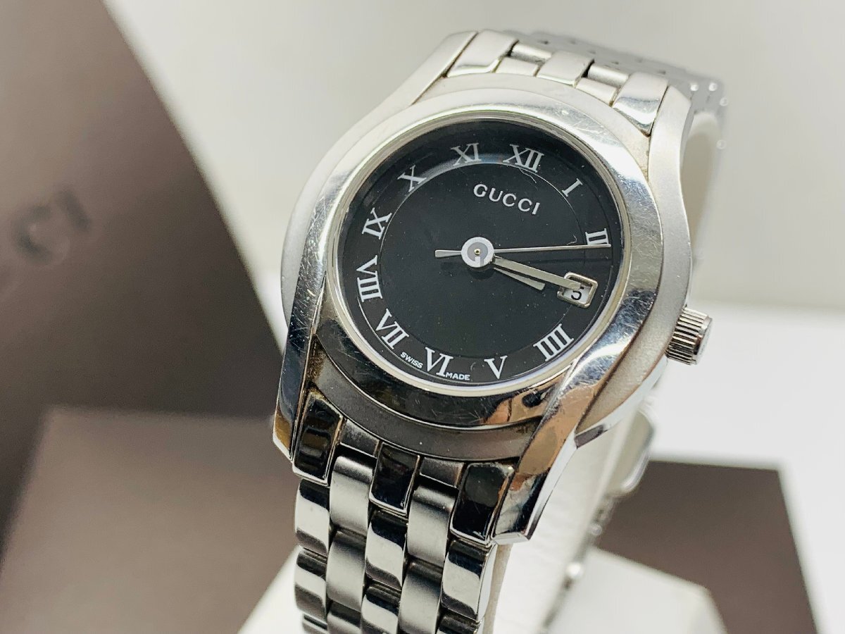 GUCCI グッチ 5500L シルバー文字盤 デイト レディース腕時計 電池交換品 箱