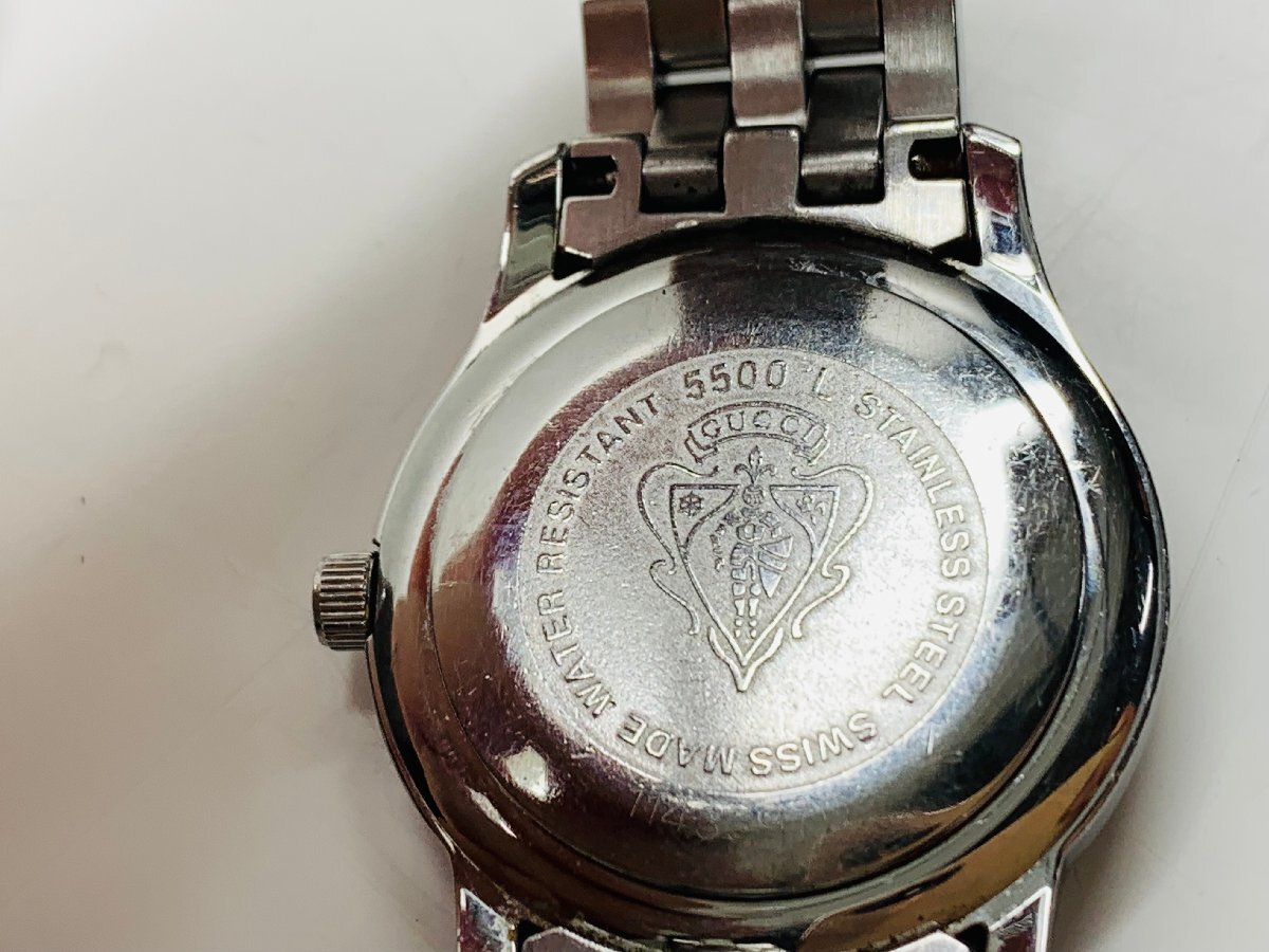 【稼働品】GUCCI グッチ 5500L シルバー文字盤 デイト レディース腕時計 電池交換品 箱