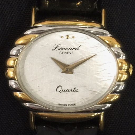 1円 レオナール ジュネーブ 腕時計 オーバル シルバーカラー文字盤 レディース 純正ベルト Leonard