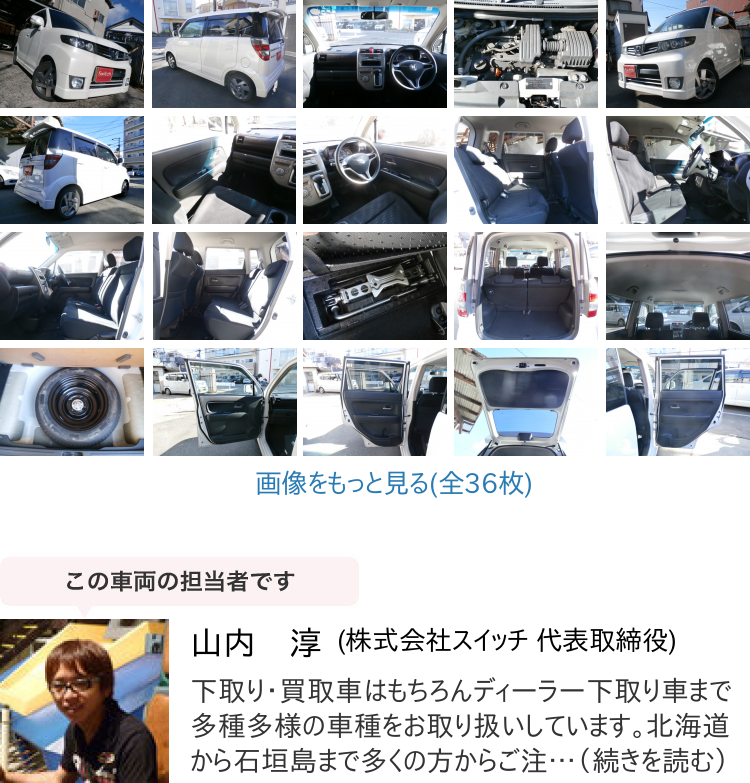 走行距離は現走行距離を記載していますのでお渡しする時には異な りますので予めご了承ください。(陸送や検査受けをする場合等はとくに)
