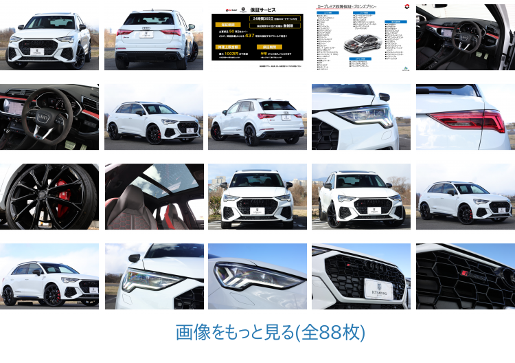 車両状態コメント内外装共にとても6万キロ走っているようには見えません。かなり綺麗な一台です。ボディカラーはグレイシアホワイト。ブラックを要所に使用したブラックパッケージ装備車両です。足元もグロスブラックの21AWでバッチリ決まってます。内装もRSデザインパッケージやB&Oオーディオを装備するなど隙がありません。