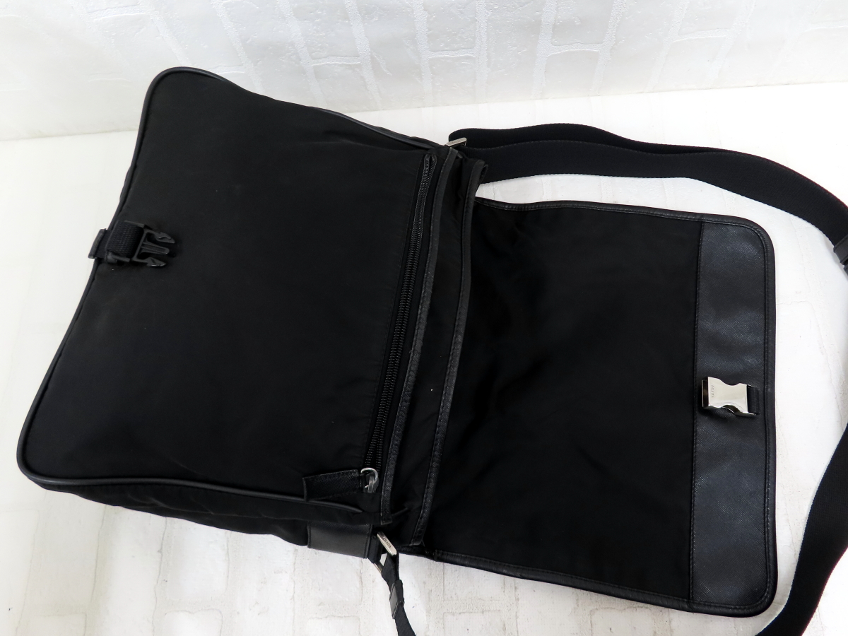 Store ◆超美品◆PRADA プラダ◆メンズ◆ナイロン サフィアーノ レザー 本革◆ショルダー バッグ◆ブラック シルバー金具◆イタリア製◆A15869