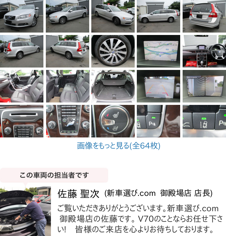 Store 【諸費用コミ】:★V70 T4 SE 黒革 地デジナビF&BカメラETC 1.6ターボ★静岡県御殿場市★中古車