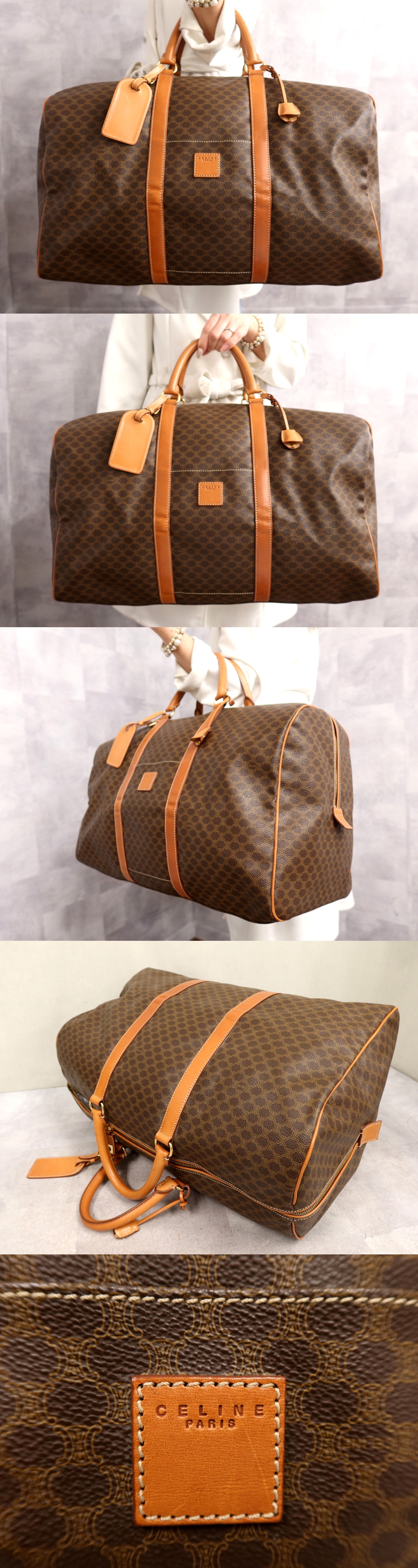 Store ●超美品●CELINE セリーヌ●マカダム●PVC カーフ レザー 本革●ボストン バッグ●ブラウン系●ゴールド金具●大容量●かばん●Js66214