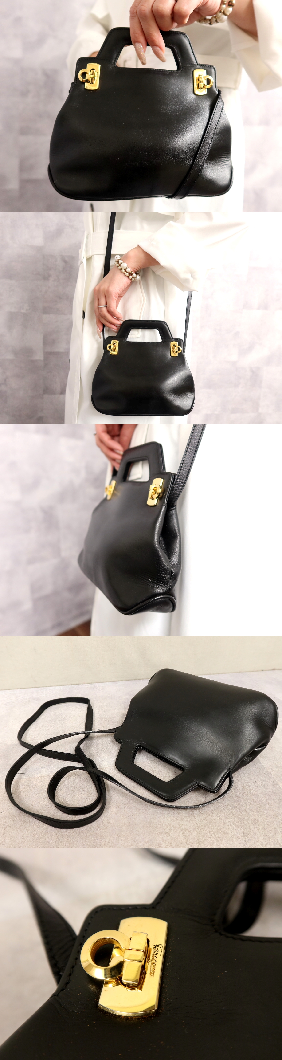 Product name: ●超美品●Salvatore Ferragamo フェラガモ●ガンチーニ●カーフ レザー 本革●2way ミニ ハンド バッグ●黒●ゴールド金具●Js66417