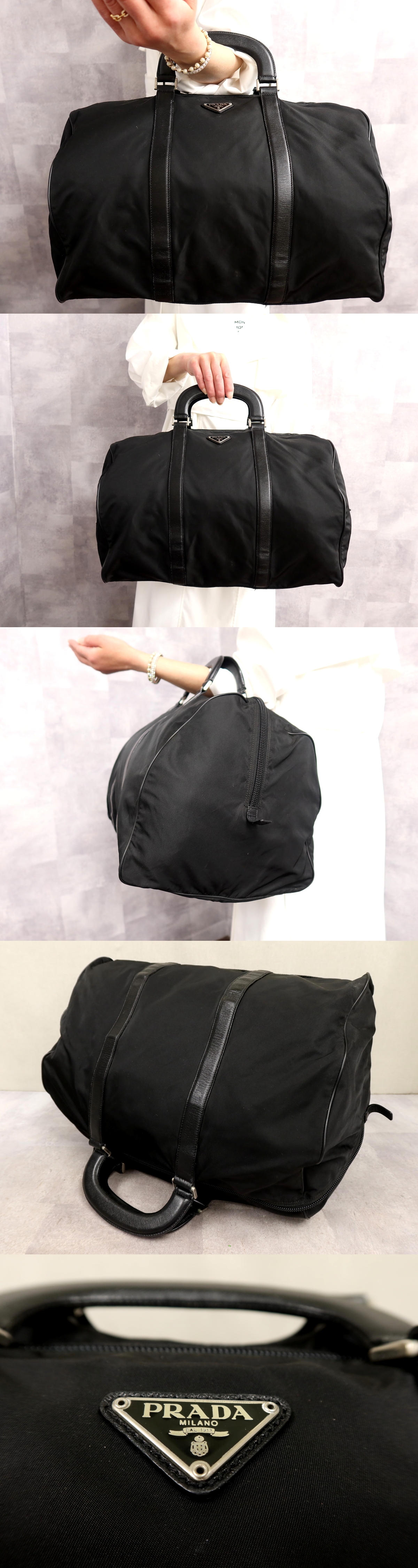 Product name: ●超美品●PRADA プラダ●三角ロゴプレート●ポコノ ナイロン サフィアーノ レザー 本革●ボストン バッグ●黒●SV金具●腕掛け●Js66693