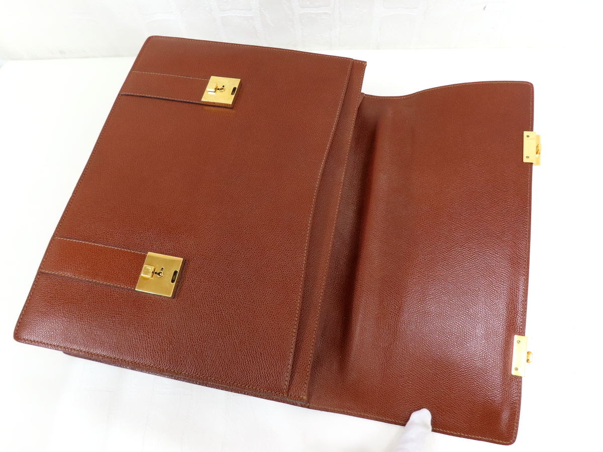 Store ◆美品◆CELINE セリーヌ◆メンズ◆カーフ レザー 本革◆ビジネス ハンド バッグ◆ブラウン ゴールド金具◆フラップ◆イタリア製◆A16501