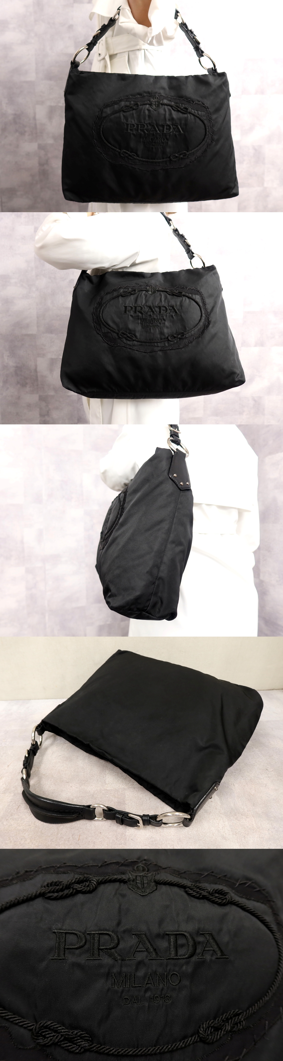 Product name: ●超美品●PRADA プラダ●ロゴ刺繍●ポコノ ナイロン カーフ レザー 本革●ワンショルダー バッグ●黒●シルバー金具●肩掛け●A4●Js66883