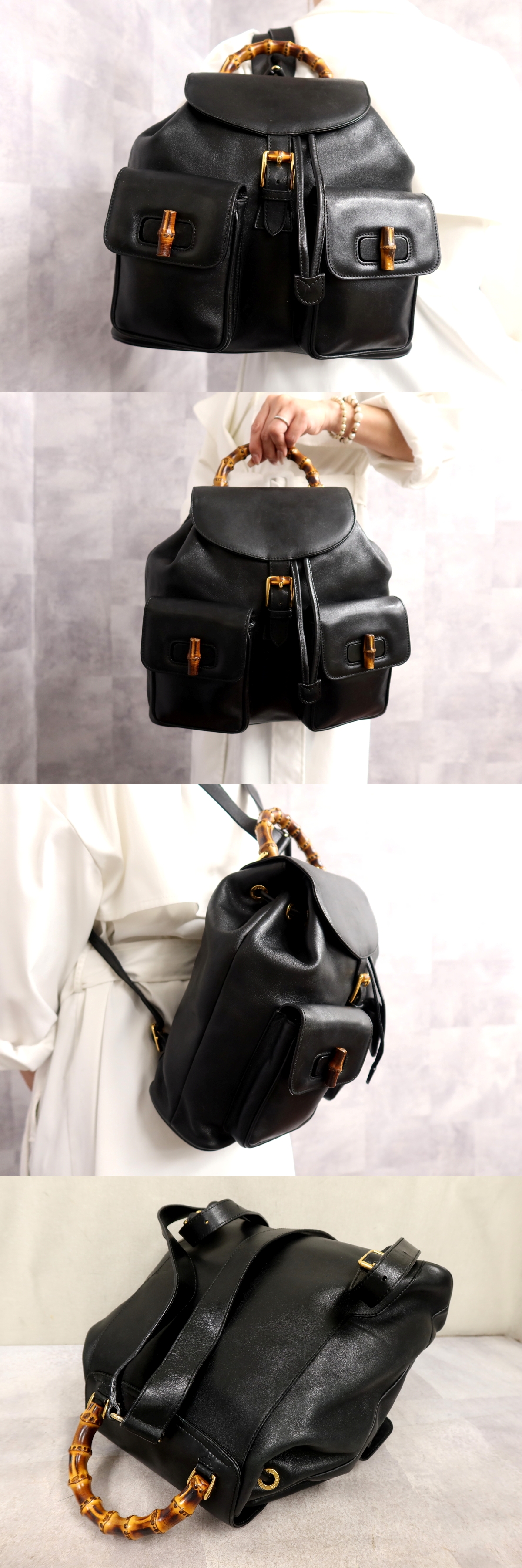 Product name: ●超美品●GUCCI グッチ●バンブー●カーフ レザー 本革●リュックサック●黒●ゴールド金具●イタリア製●A4 収納 書類 かばん●Js67170