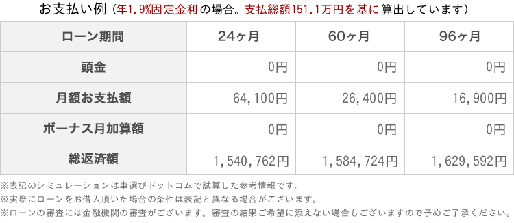 シミュレーションの計算は、オークションの開始価格と参考諸経費を合算した金額を基に算出しています。実際の購入元金とは異なる場合がございますので、予めご了承ください。