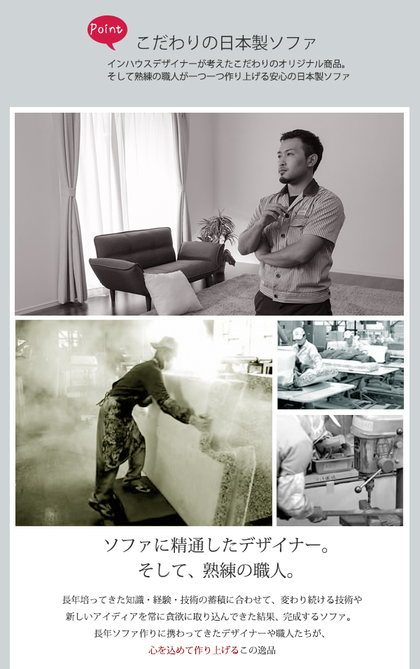 コンパクトでもゆったりすわれるポケットコイル入りカウチソファ