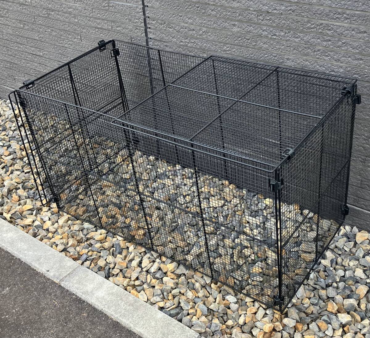 材質フレーム、艶消しブラックのメッシュ部分共に鉄(樹脂塗装)