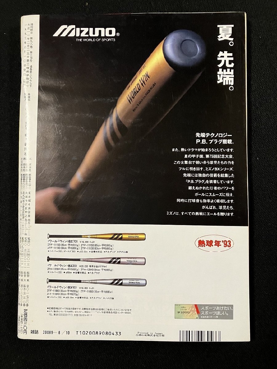 gΨ 週刊朝日 1993年8月10日増刊号 ’93甲子園 第75回全国高校野球選手権記念大会 朝日新聞社 /g03