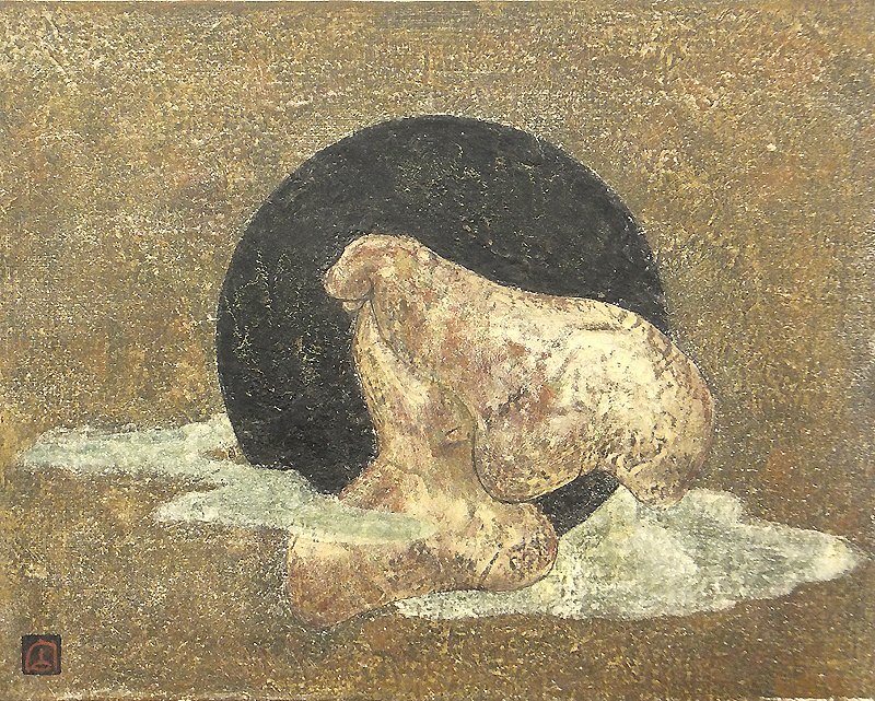 ●   作品寸:27.3×35cm                  パネルに貼ったキャンバスにミックスドメディア                    作品状態は良好