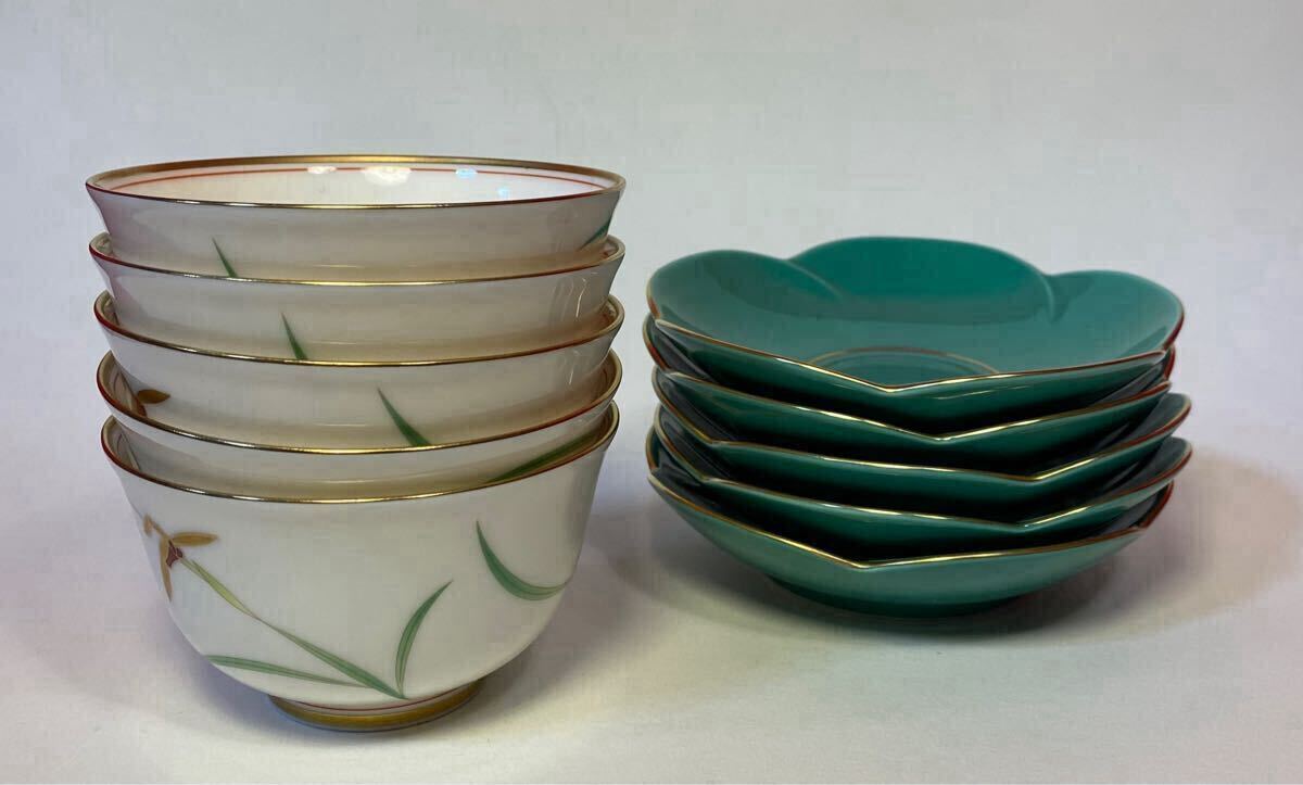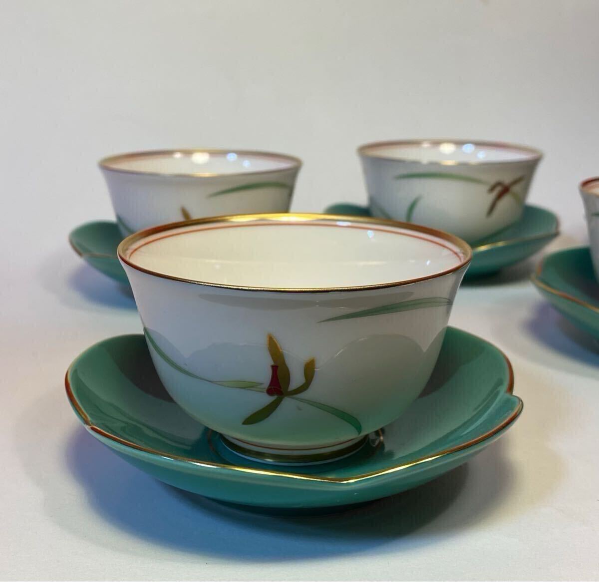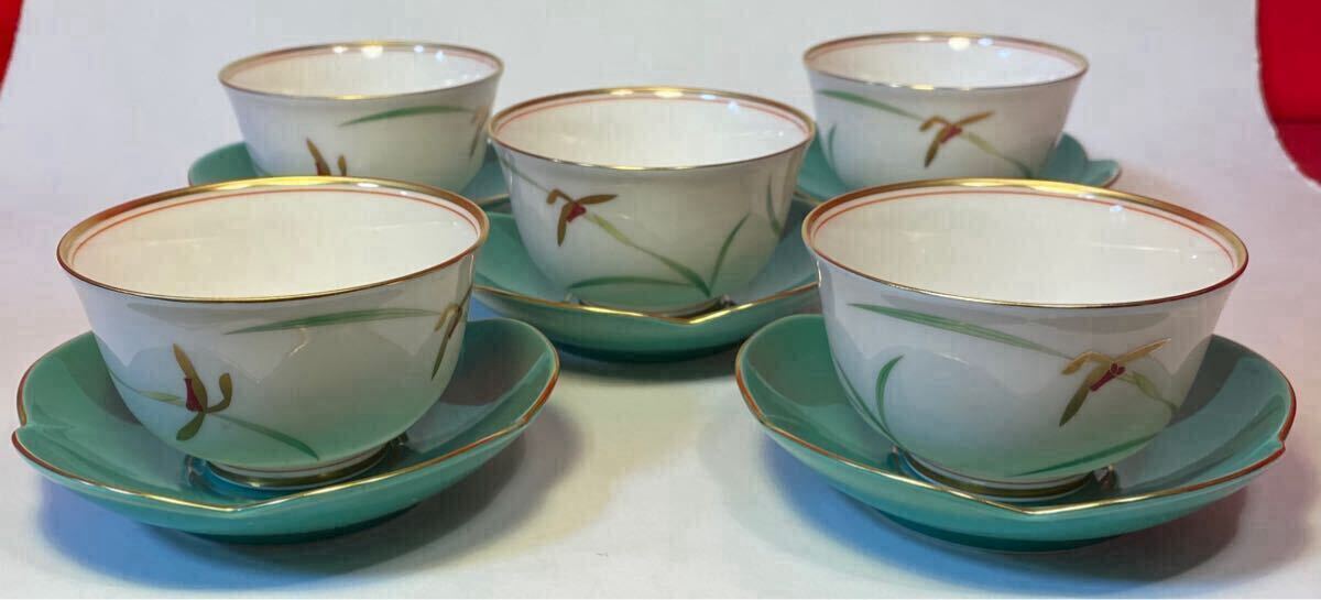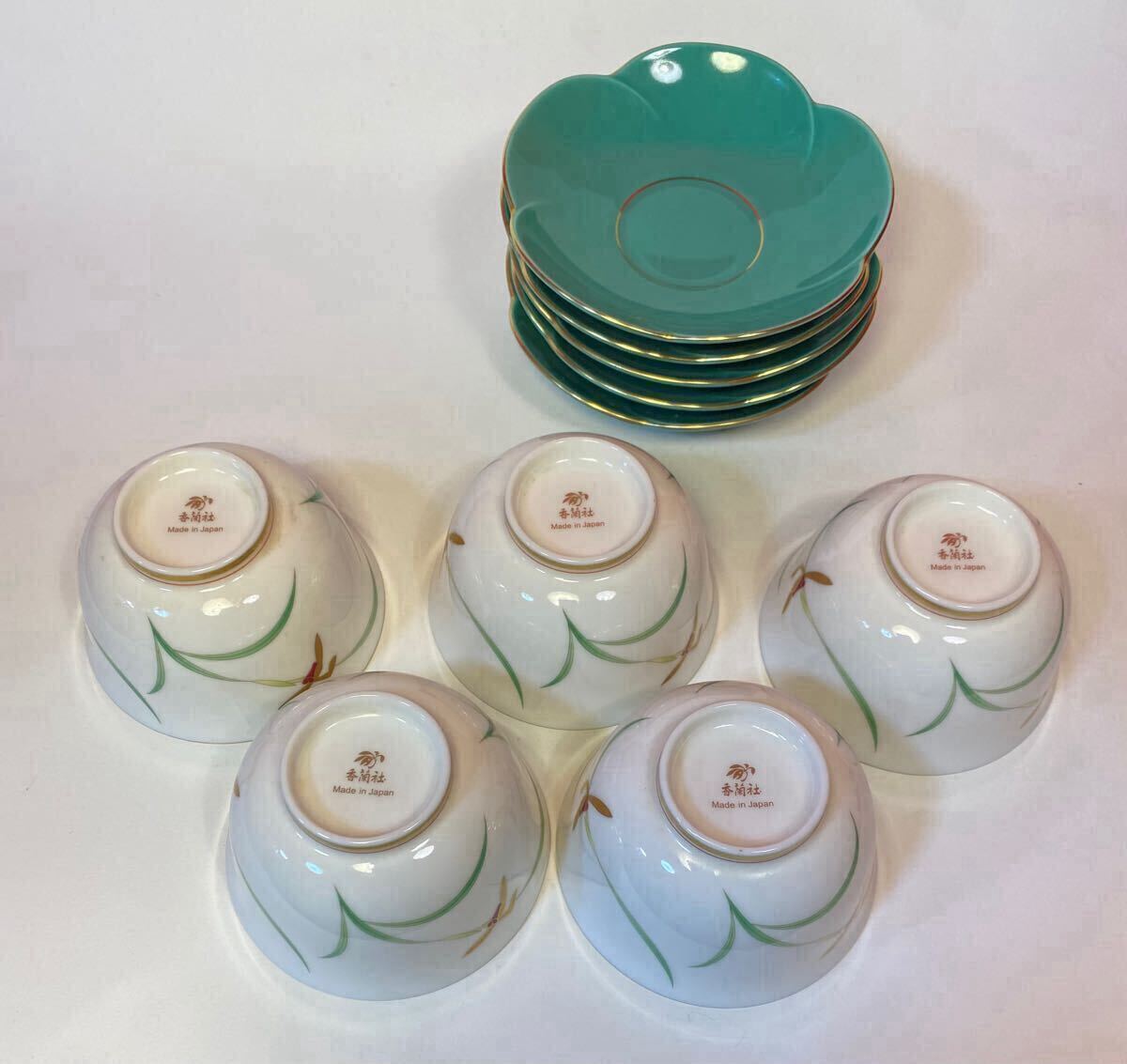 Product name: 煎茶道具『香蘭社 梅型茶托+蘭図湯呑 5客 在名「香蘭社」』茶道具