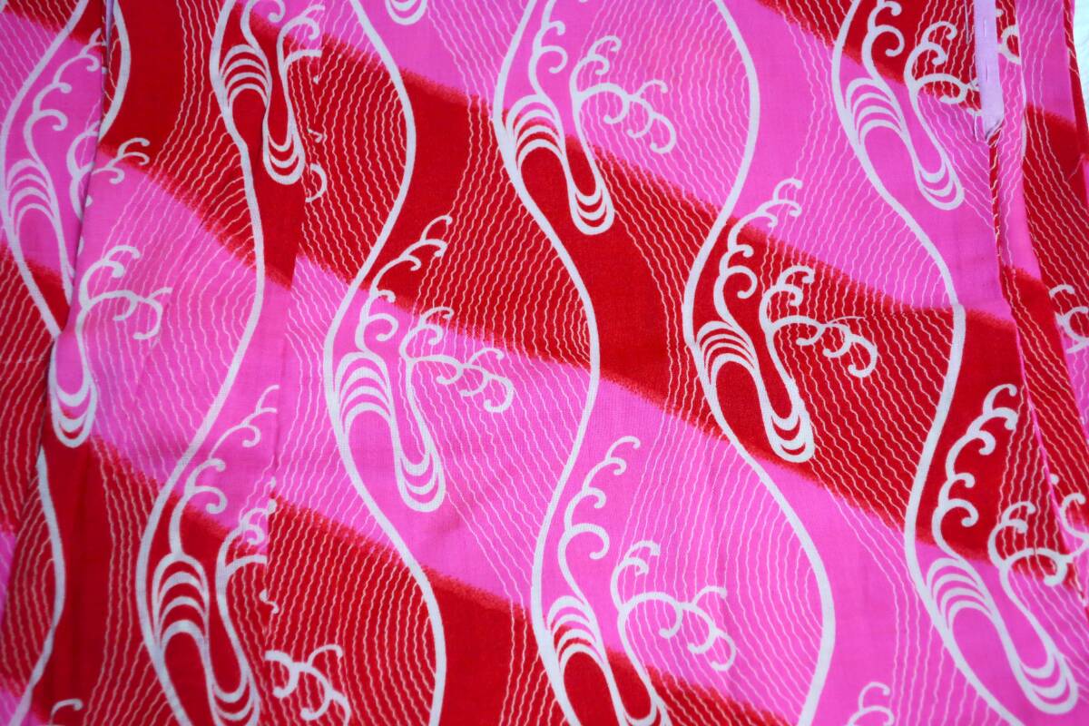 紺地に薄ピンクの筆跡のような模様のものは羽織になります。