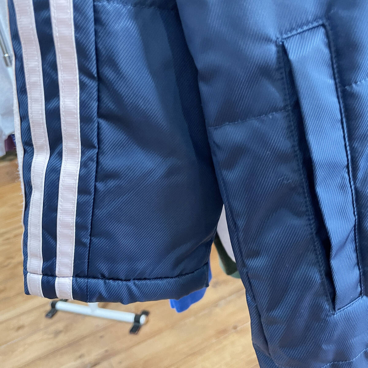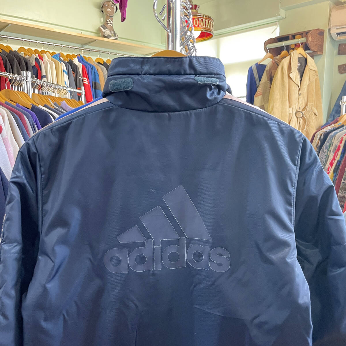 Product name: 【期間限定SALE】 古着 アディダス adidas ベンチコート ナイロンジャケット 裏ボア ロゴ ネイビー キッズ150cm アウター スポーツ AM0118