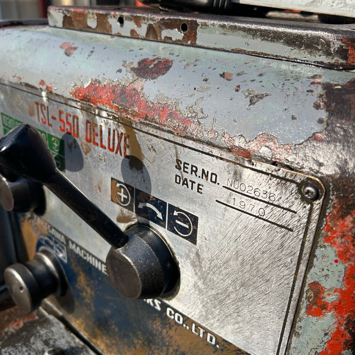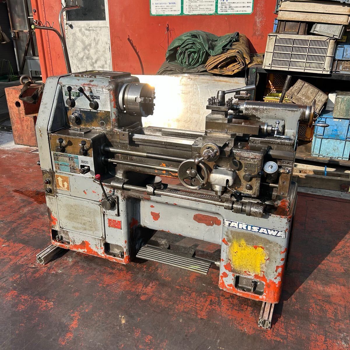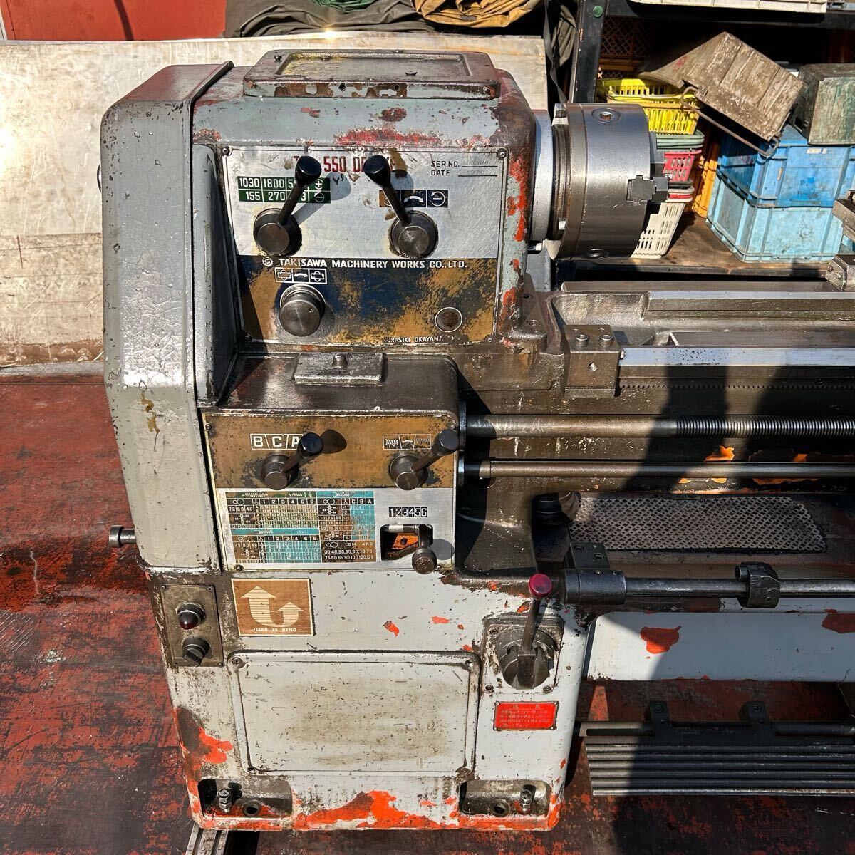 T9471 【1円〜!】滝沢 旋盤 TSL-550 DELUXE 主軸回転数83-1800rpm 心間550 ベッド上の振り360 ※電源スイッチ故障(8枚目下)【動作確認済】