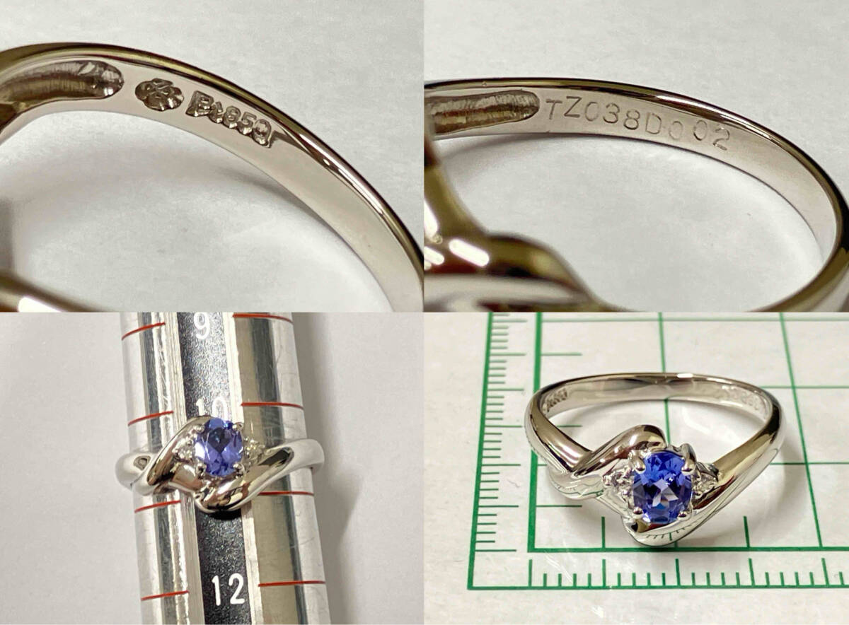 【簡易鑑別書付/クリーニング済】Pt850 総重量約3.8g 約10.5号 天然タンザナイト 天然ダイヤモンド 0.02ct プラチナ デザイン リング