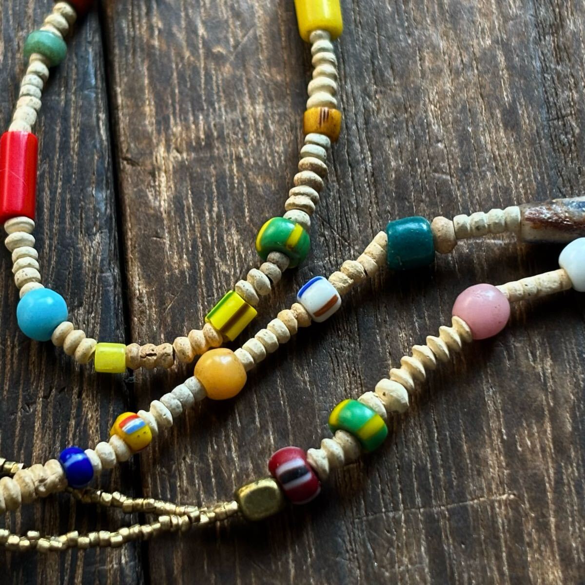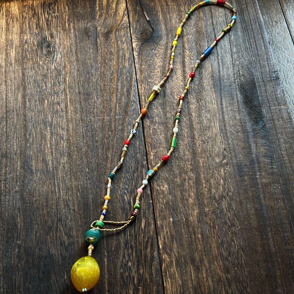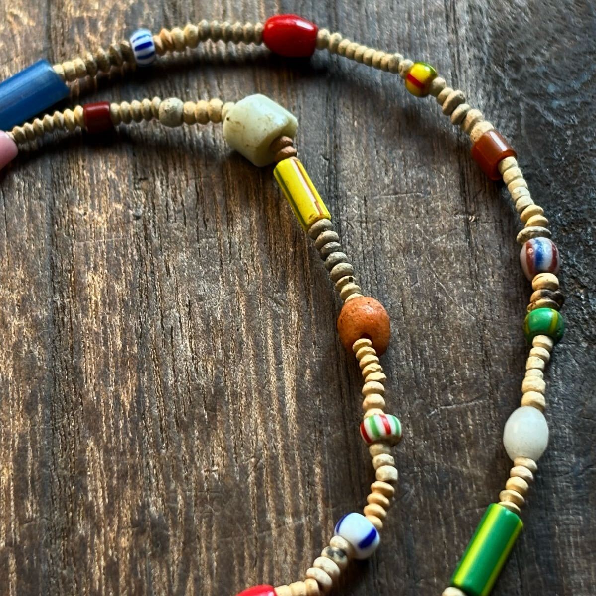 1800-1900年初期にボヘミアやヴェネチアで作られアフリカに交易で渡った大きなエチオピアンチェリーやカンネッテ、トルカナビーズ、テラコッタビーズ、クロボビーズ、エチオピアンブラスを繋いだネックレスです