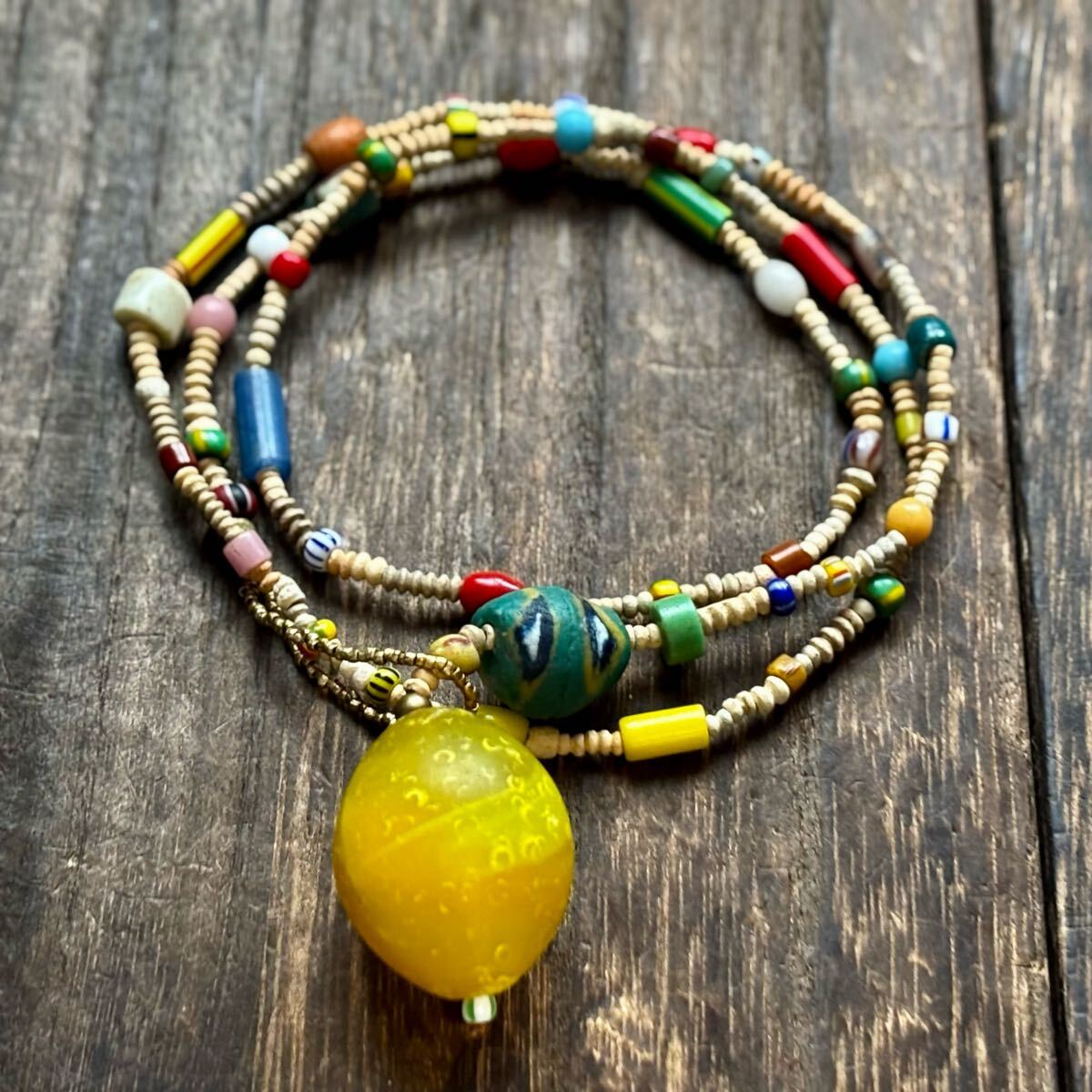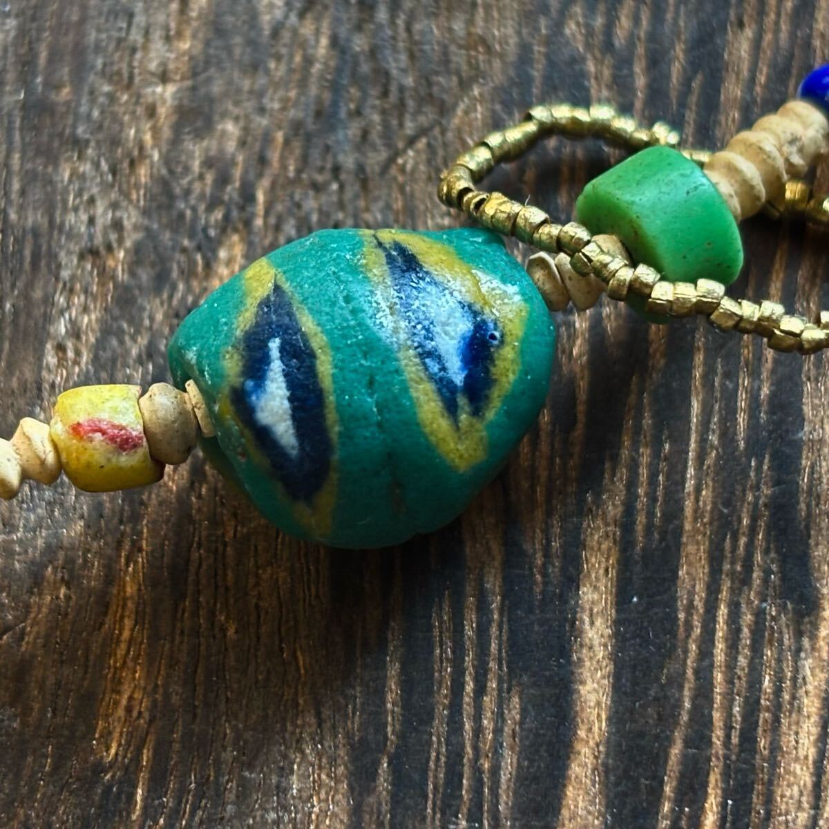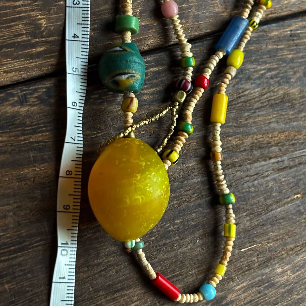 1800-1900年初期にボヘミアやヴェネチアで作られアフリカに交易で渡った大きなエチオピアンチェリーやカンネッテ、トルカナビーズ、テラコッタビーズ、クロボビーズ、エチオピアンブラスを繋いだネックレスです