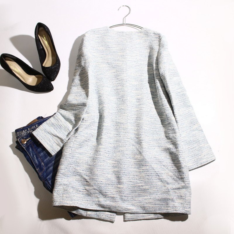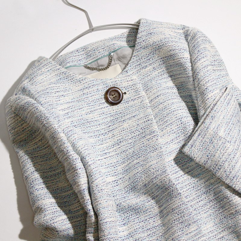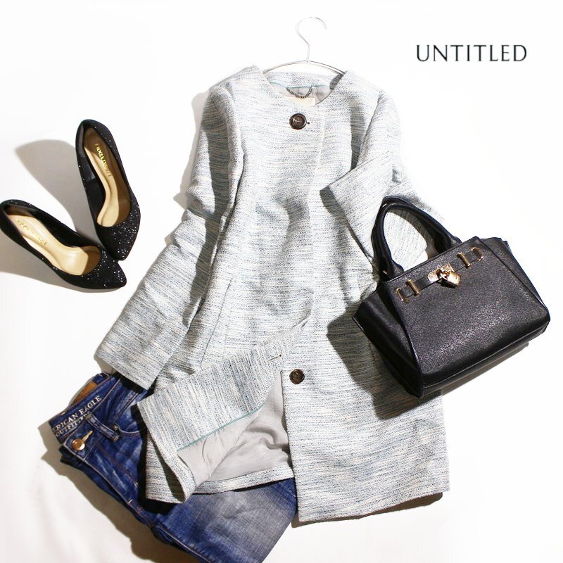 Product name: 美品 アンタイトル UNTITLED 株) ワールド 春 きれい色 淡色 ミックス ノーカラー ツイードコート スプリングコート 0 水色 ブルー 白
