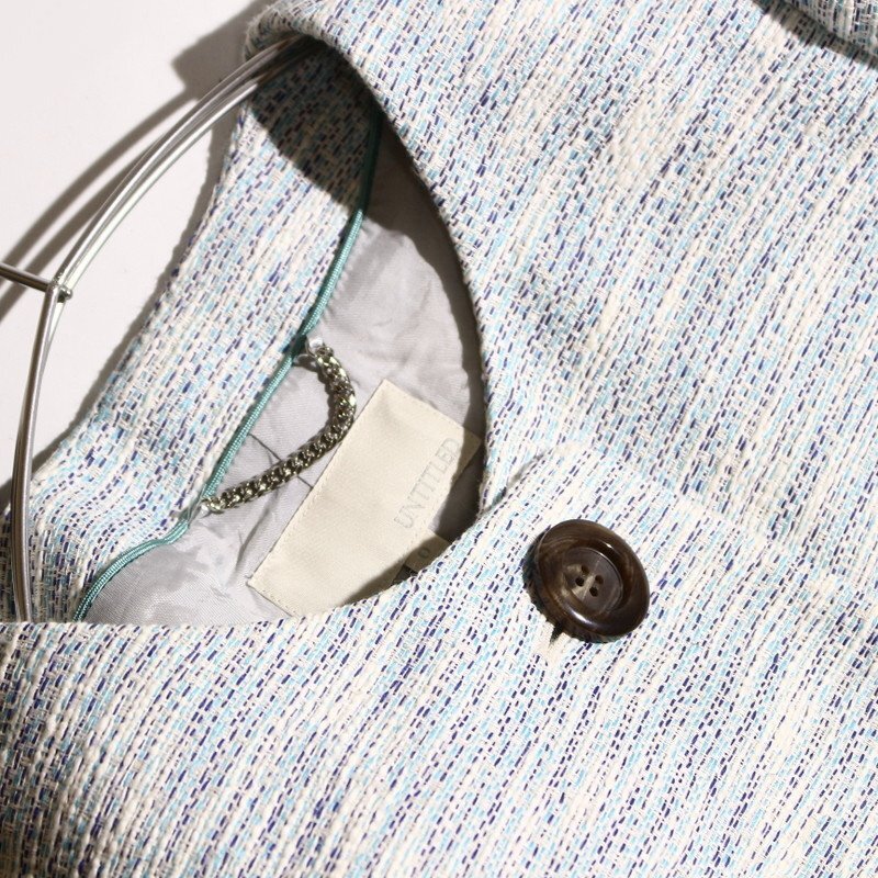 美品 アンタイトル UNTITLED 株) ワールド 春 きれい色 淡色 ミックス ノーカラー ツイードコート スプリングコート 0 水色 ブルー 白