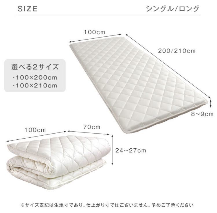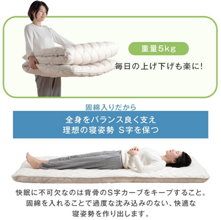 Product name: 【送料無料】硬めの3層 敷ふとん [生成り色 100×210cm(シングルロング)] 厚さ8~9cm マットレスいらず! 高反発 帝人アクフィットECO使用