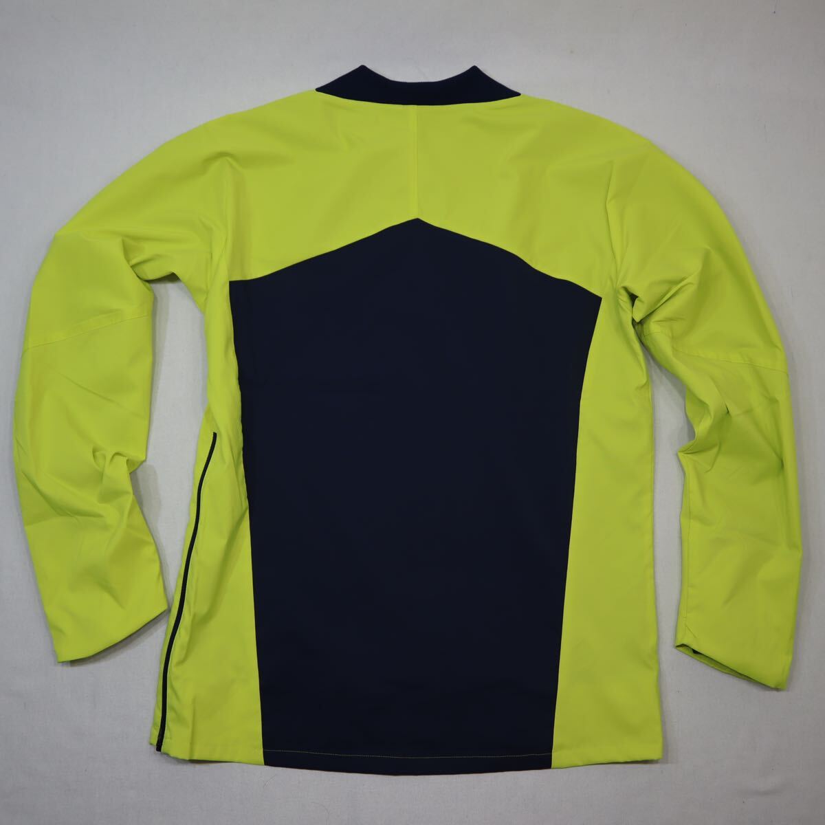 ●肩甲骨部分には織物生地の特性を生かし斜め裁断(バイアス)を施すことで、身体の動きに馴染む伸縮効果を発揮する独自の立体パターン「バイヤシステム」を採用。はっ水・ストレッチ織物素材「ストレッチウーブン」を採用。着脱のしやすい左脇ファスナー仕様。総裏メッシュ仕様。角度によって見え方の変わるマジョーラカラー転写ロゴを採用