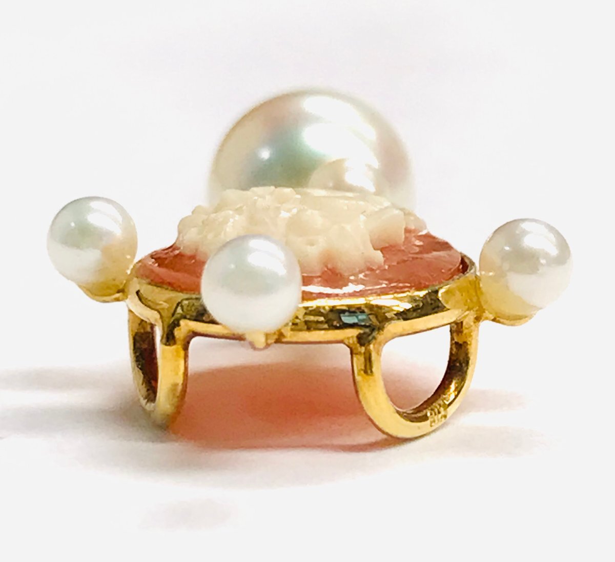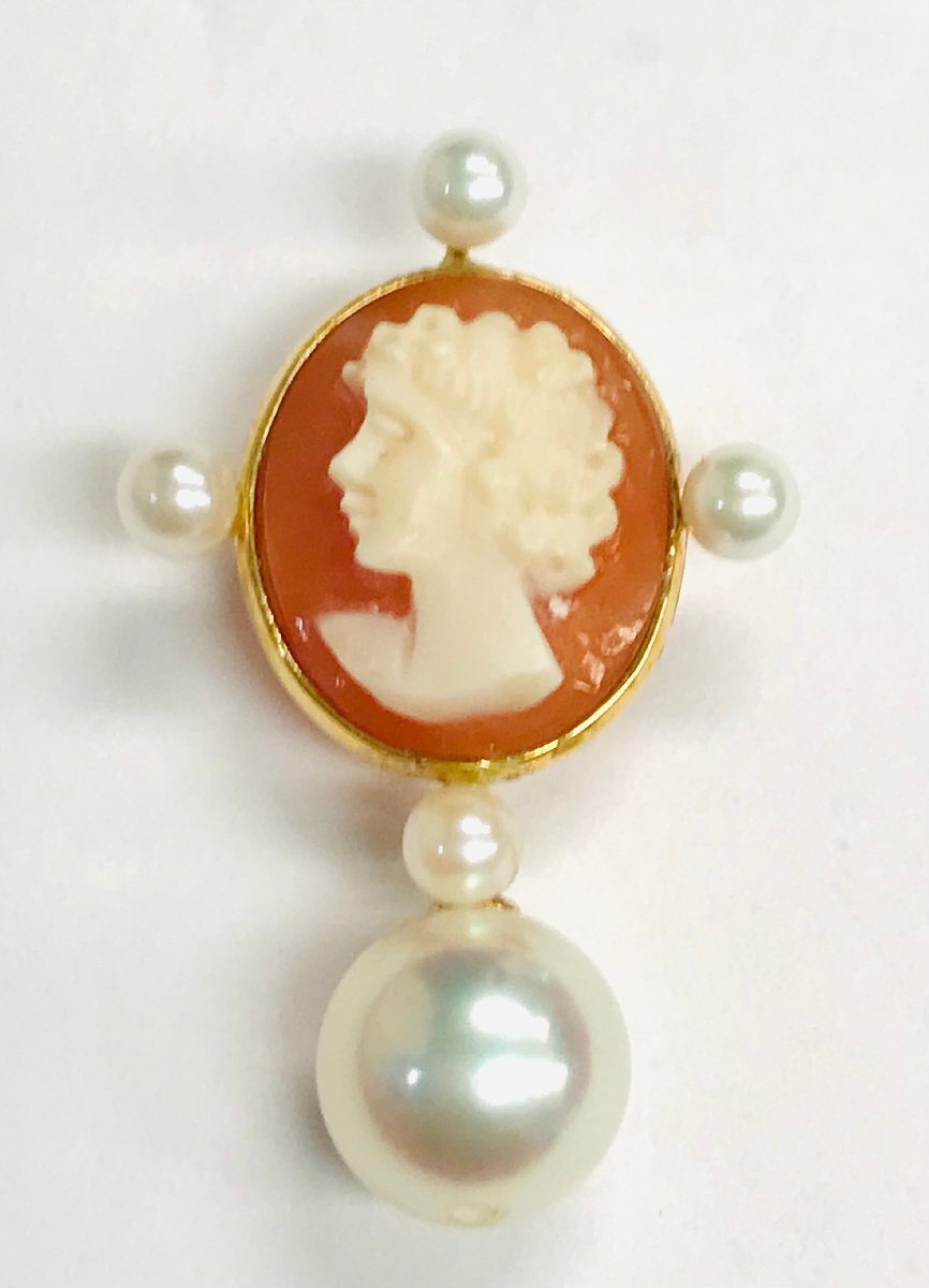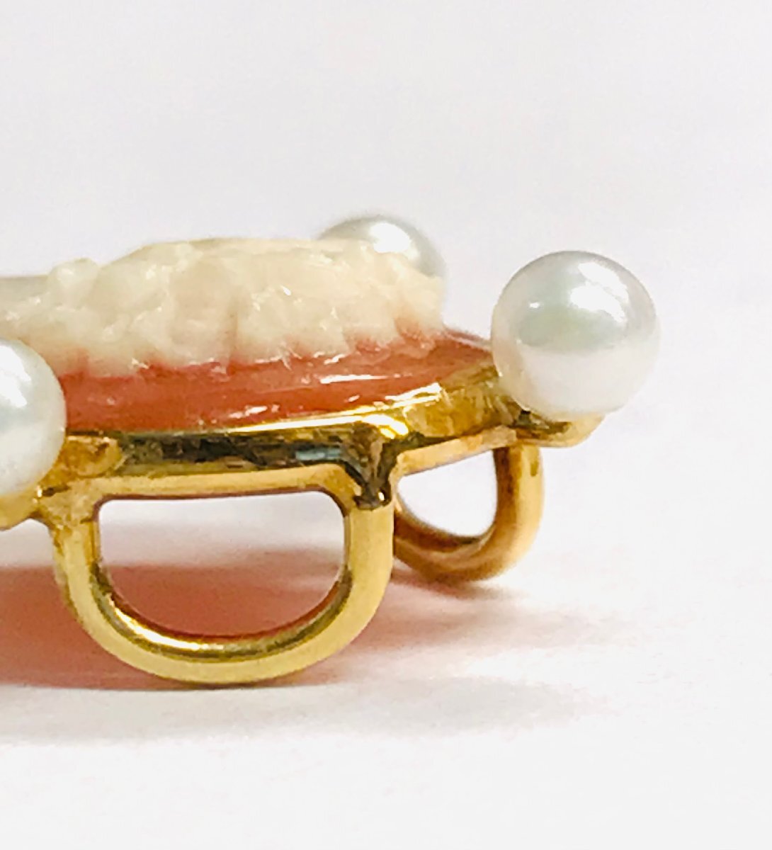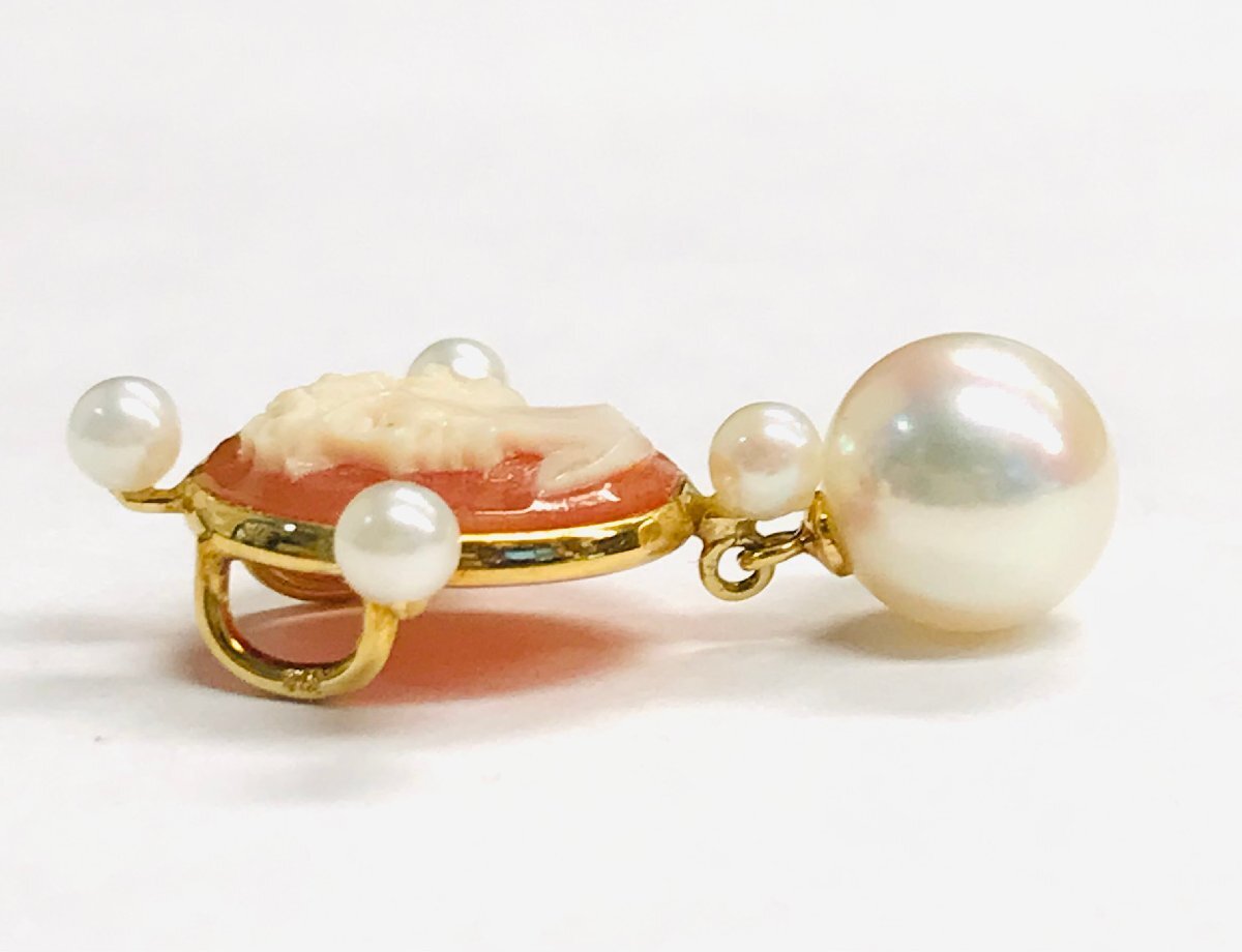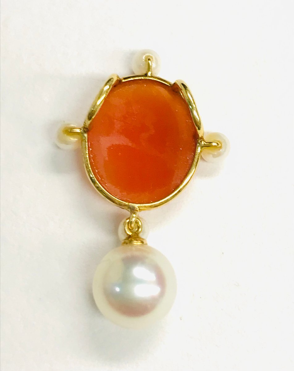 Product name: qoj.Z9S01 K18 ゴールド アンティーク調 カメオ フェイクパール ペンダントトップ