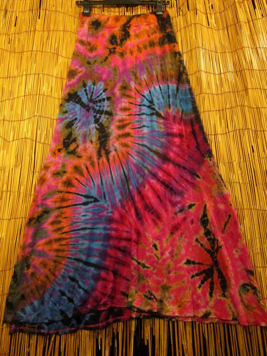 ④新品*スパンデックス混合*レーヨン素材*タイダイ染め*ロングスカート