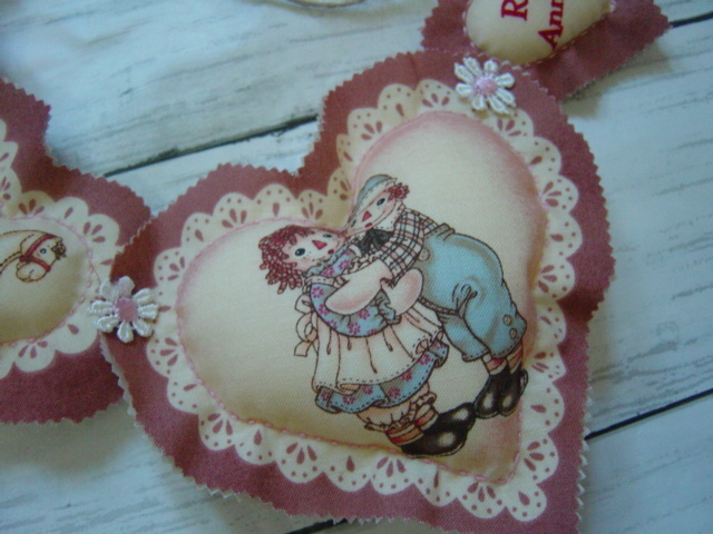 13/カントリー雑貨★Ann&Andy★ラガディ アン&アンディ/ハートガーランド/オーナメント(淡ピンク)