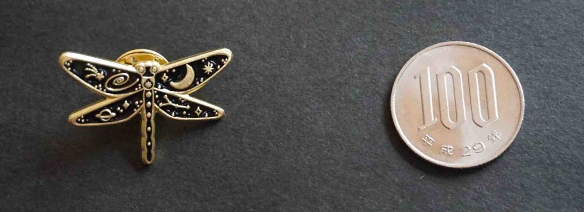 Product name: 『右三日月蜻蛉』激渋 『黒金 トンボ 蜻蛉 太陽 雲 風 昆虫 』金属ピンバッジ バッチ■おしゃれ ファッション ラッキーアイテム 開運■