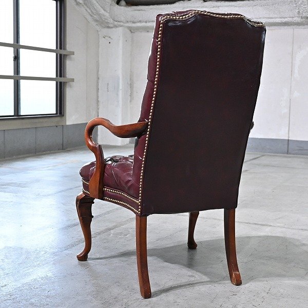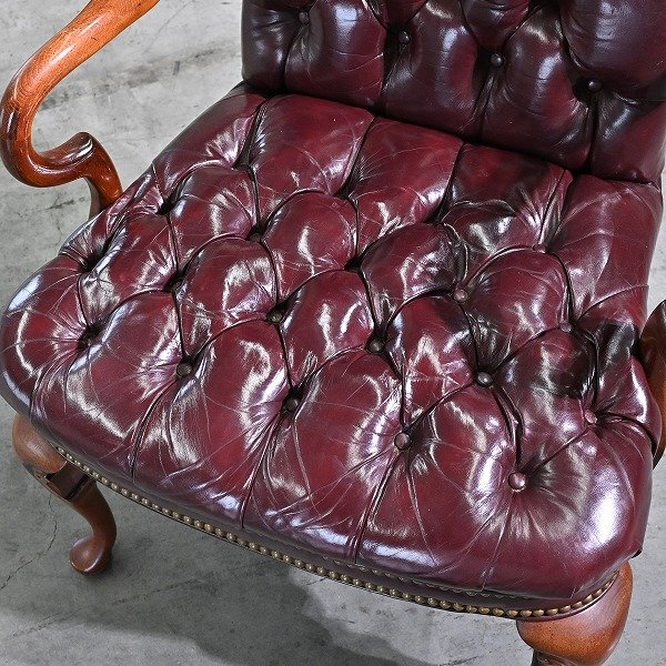 アメリカンビンテージ ハイバックチェア バーチ無垢材 ジョージアンスタイル チェスターフィールド シングルソファ 猫脚 ボタン留め 鋲打ち