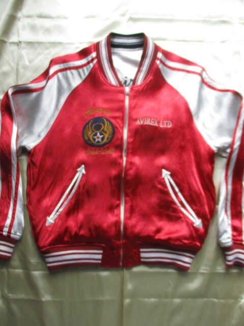 【送料無料】AVIREX アヴィレックス スカジャン リバーシブル Sサイズ  両面刺繍 虎 鷲 龍 レーヨン 赤 白  レッド ホワイト