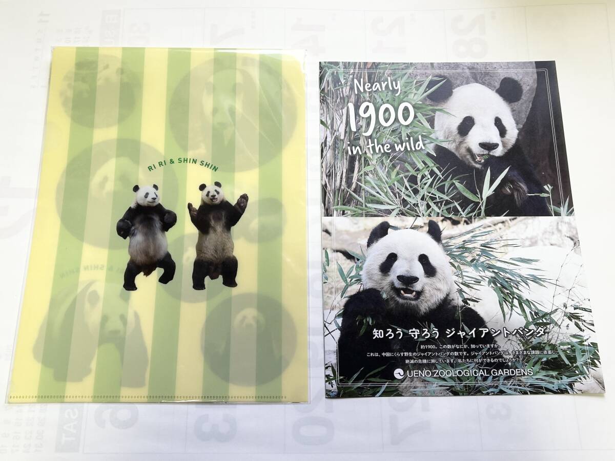 2011年2月から2024年9月まで上野動物園で過ごしたジャイアントパンダのリーリーとシンシンが片面ずつ両面にデザインされた実写A4クリアファイル1枚と普及啓発パンフレット1枚です。