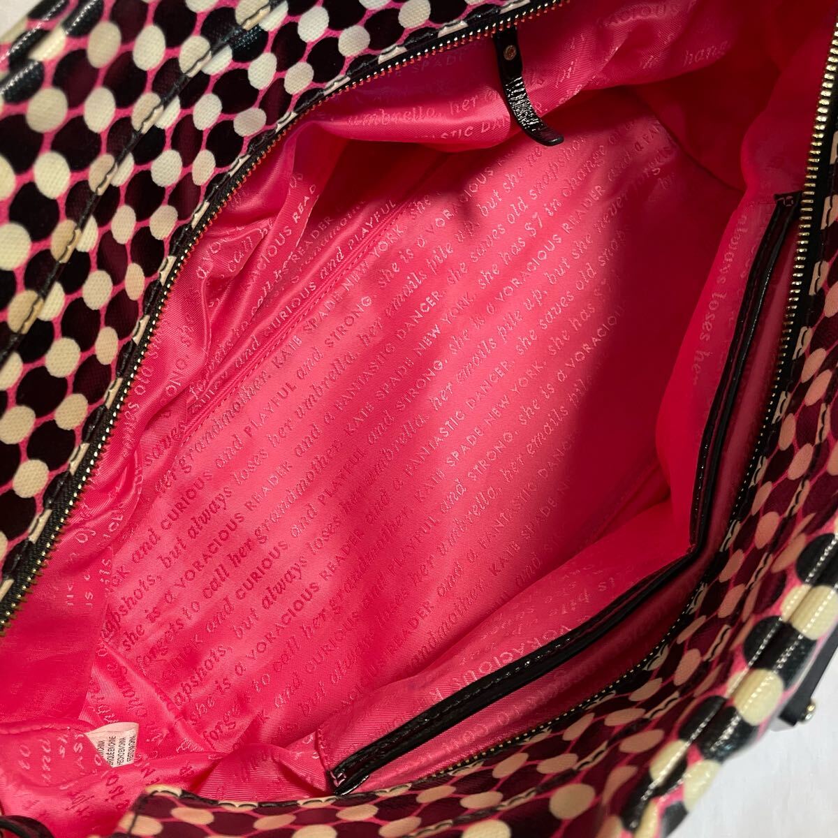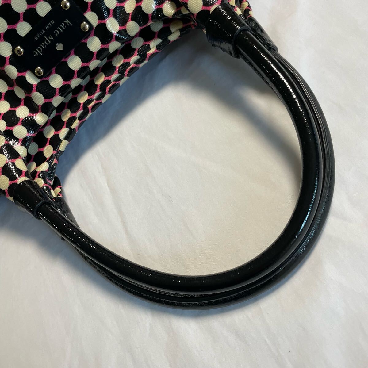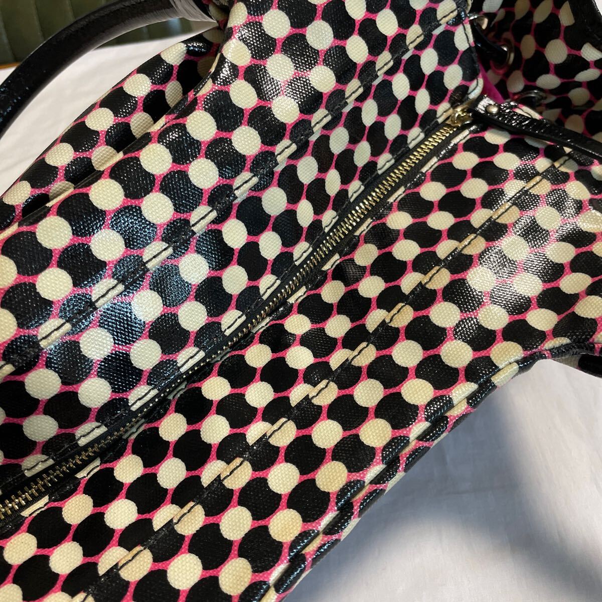 Product name: kate spade ケイトスペード ハンドバッグ レディース ブラック ピンク系 ドット柄 ビニール PVC カバン 鞄 トートバッグ タック入り