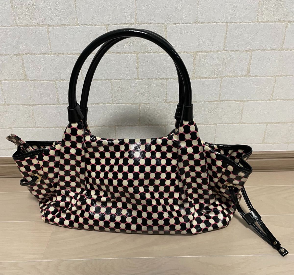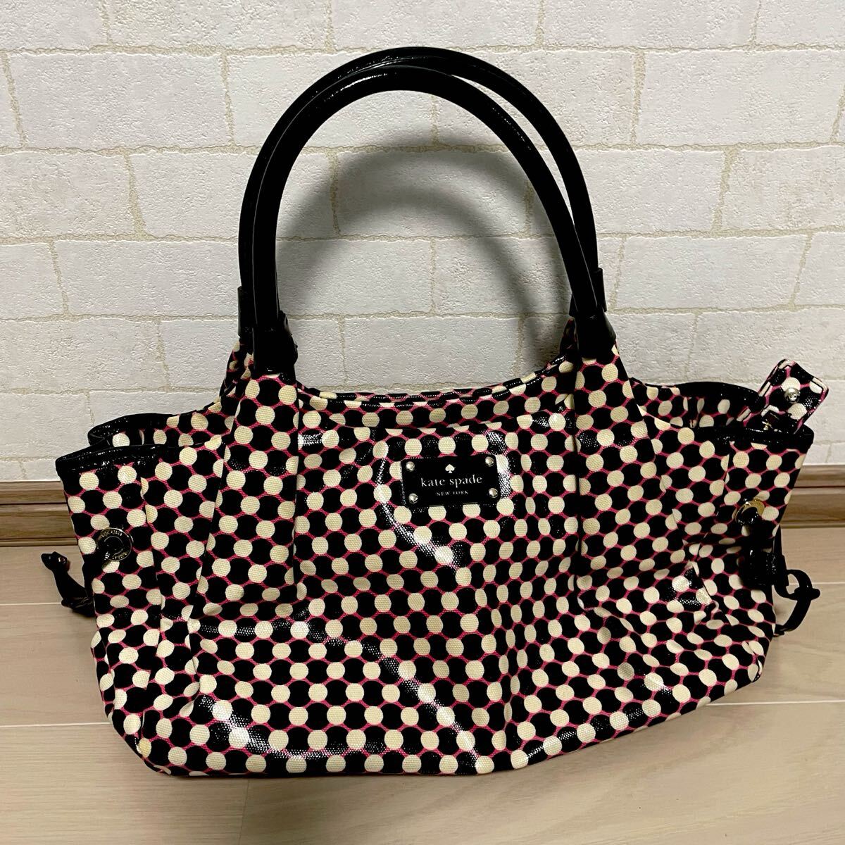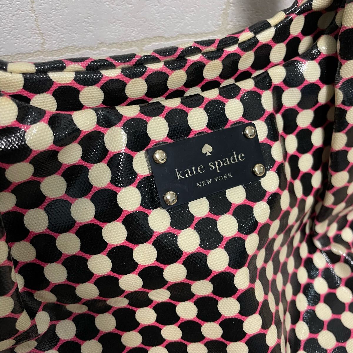 Product name: kate spade ケイトスペード ハンドバッグ レディース ブラック ピンク系 ドット柄 ビニール PVC カバン 鞄 トートバッグ タック入り