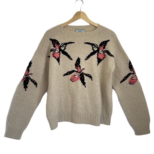 Product name: プラダ PRADA 長袖セーター/ニット サイズ40 M - ベージュ×黒×ピンク レディース クルーネック 美品 トップス