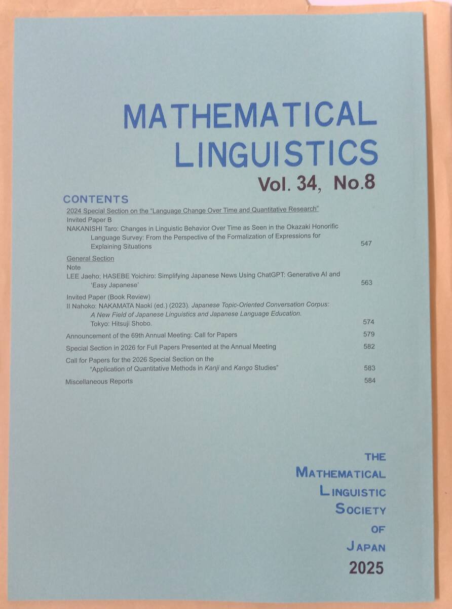 Product name: 『計量国語学』 34巻8号 2025 pp.547~586 Mathematical Linguistics Vol.34 No.8 計量国語学会(編)