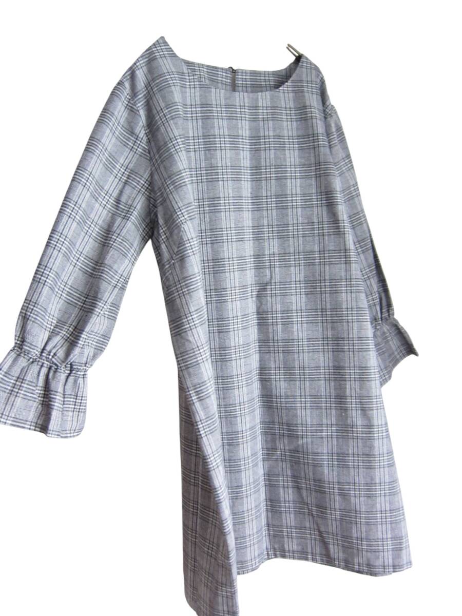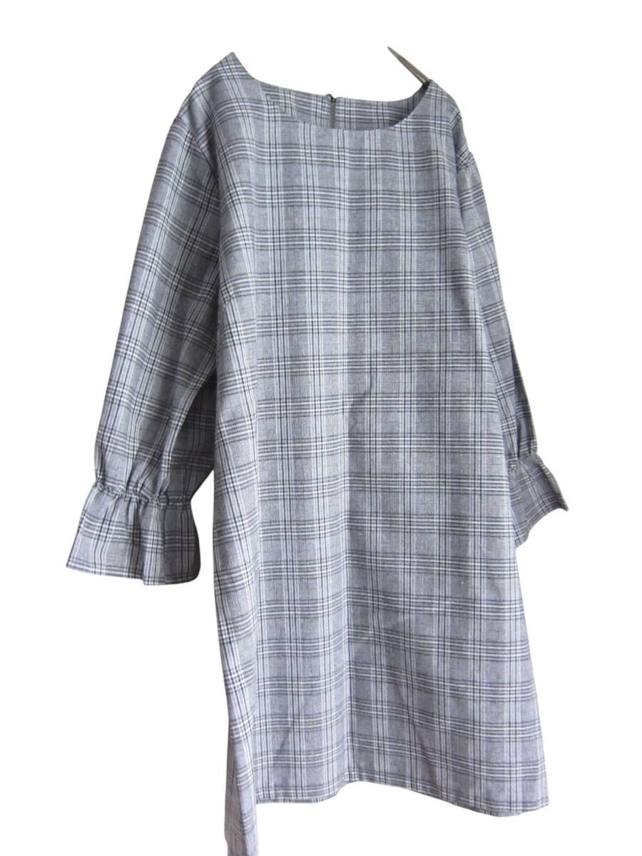 Product name: 送料無料 美品 【F2・3L】 ターシャルビー ブラック チェック 7分袖 ロング丈 チュニック 大きいサイズ ゆうパケットプラス