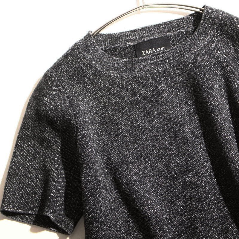Product name: 美品 ZARA knit ザラ ニット 株) オンワード樫山 春 夏 ストレッチ 半袖 ミックスニットカットソー S ブラック 黒 ホワイト 白カットソー
