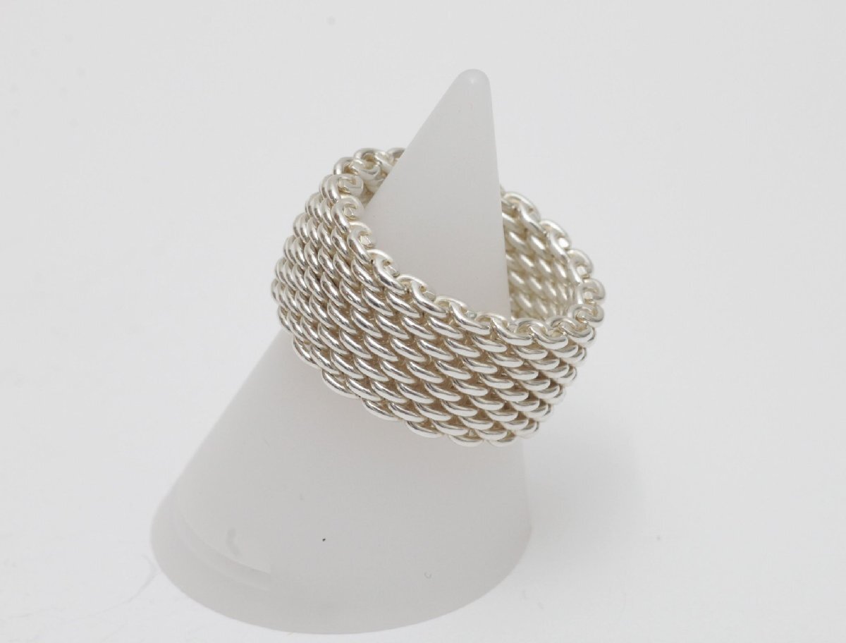1T095★ TIFFANY & Co. サマセット リング 925 ★ ティファニー メッシュ シルバー アクセサリー 【ニューポーン】