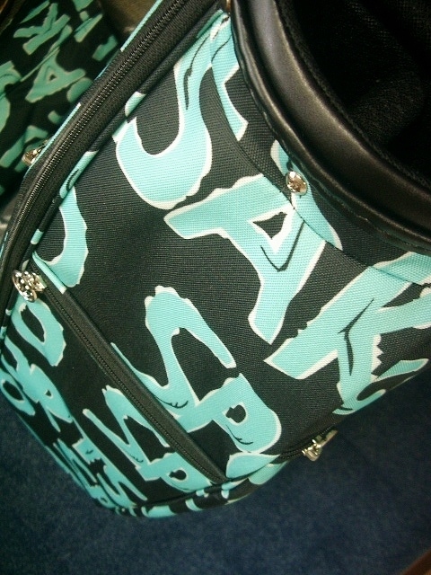 Product name: 未使用 ミエコ ウエサコ レディース ビッグ文字プリント・デザイン 合繊素材 黒エメ・グリーン ゴルフバッグ