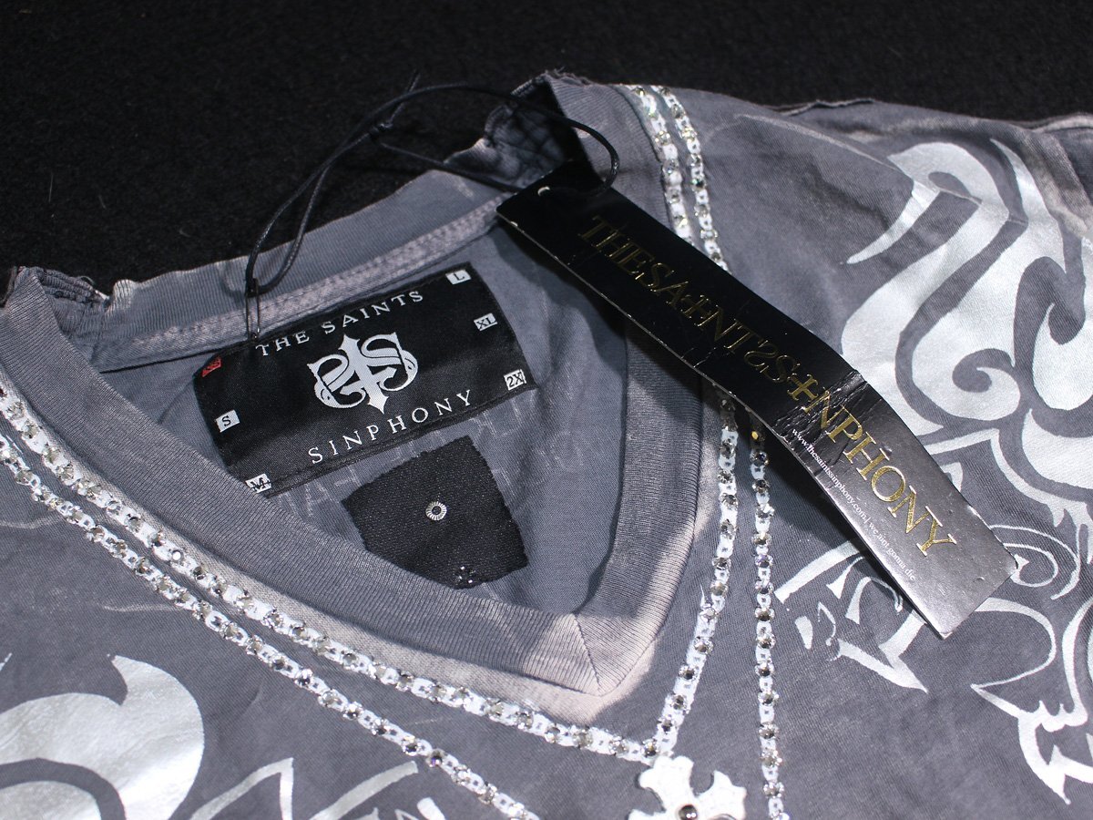 Product name: 未使用タグ付 THE SAINTS SINPHONY ダメージ加工 ラインストーン 半袖Tシャツ XS