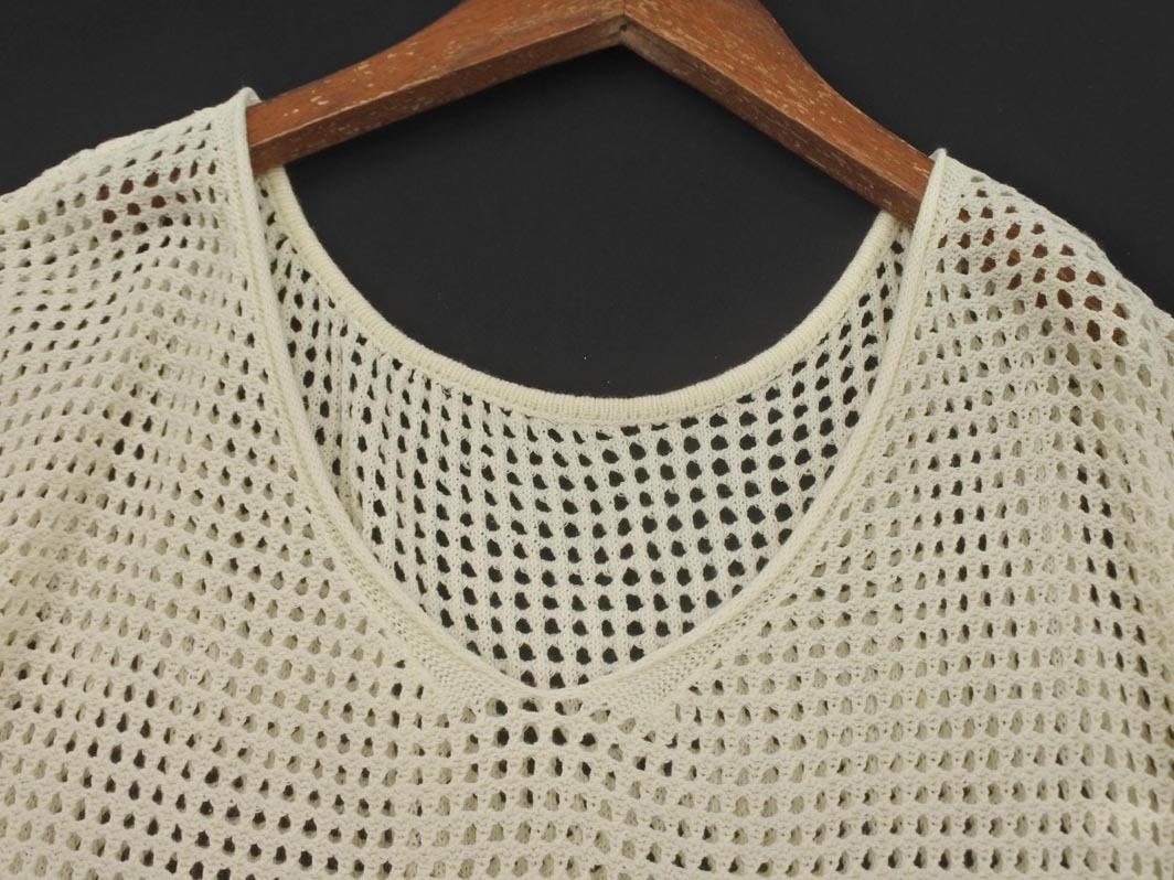 Product name: ネコポスOK LOWRYS FARM ローリーズファーム フレンチスリーブ 透かし編み ニット セーター sizeF/アイボリー ■◆ ☆ fec1 レディース