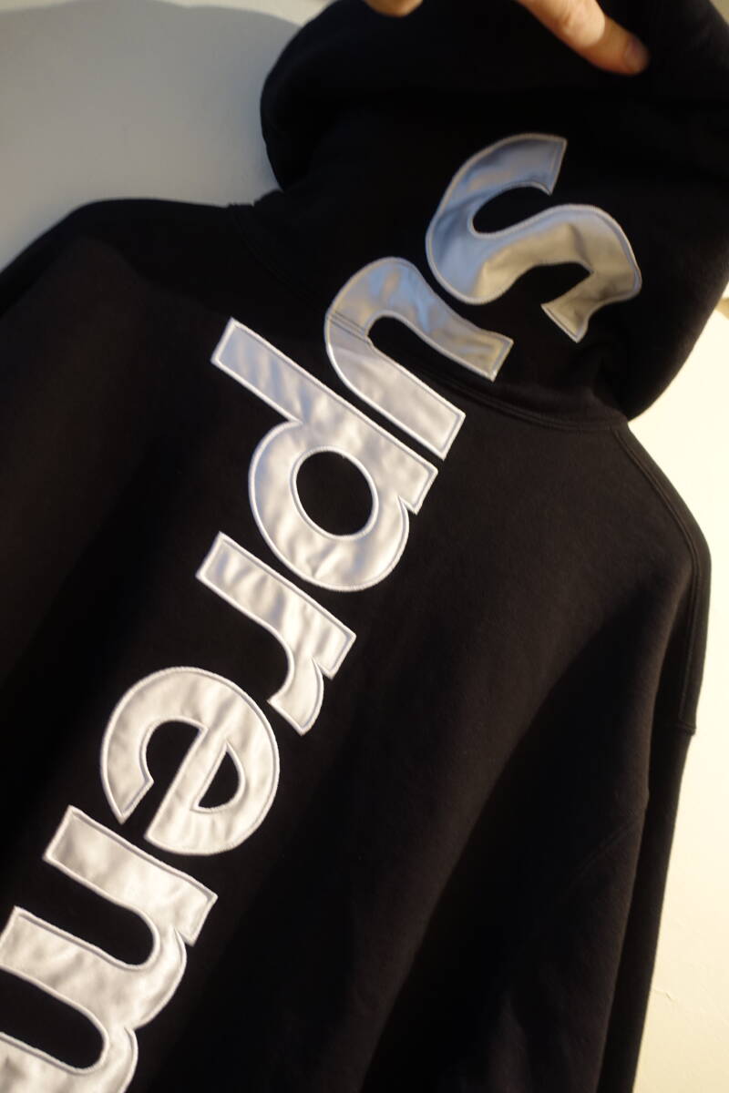 Supreme スウェット パーカー サイズL SUPREME Satin Applique 縦ロゴ 黒
